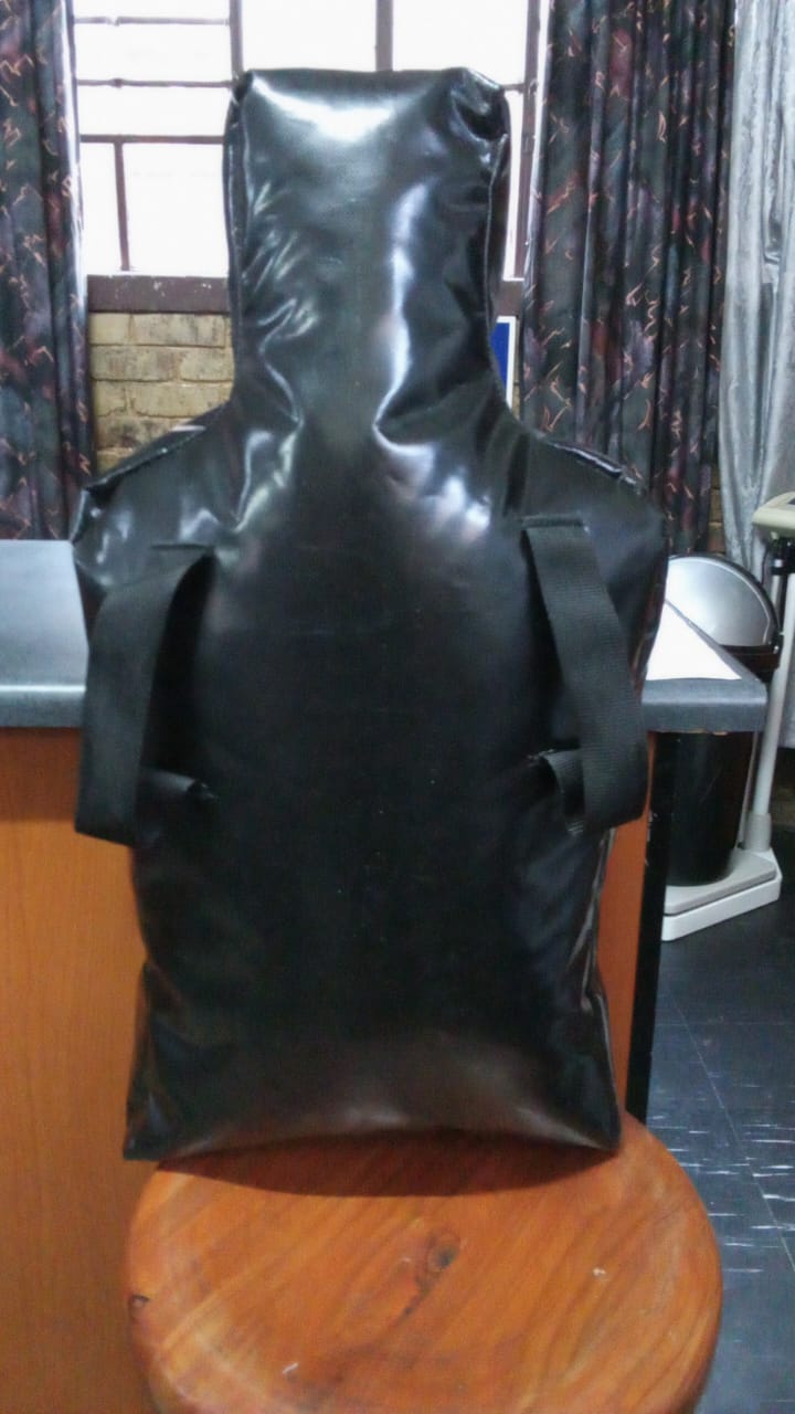 Human shaped punching bags, with handles.